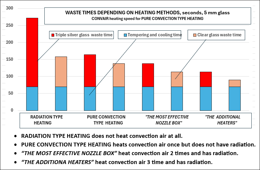 - With waste time you lose: 1) additional production, (m²/hour), 2) operator and labor cost saving ($/hour ) and 3) + all the time energy is wasted: A) The convection blowers are and heat losses. B) The furnace and tempering take the whole of the tempering time C) The tempering blower efficiency about 60%. D) If the speed is reduced, or even stopped, starting takes and long for acceleration!