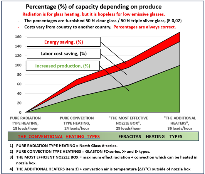 - I do not know what kind of profit might PURE RADIATION TYPE HEATING make. Mostly Chinese and KERAGLASS make ”convection heating ” tempering furnaces. It should be forbidden. It does not heat convection air. See below the graph. See ”Competition” of this website.